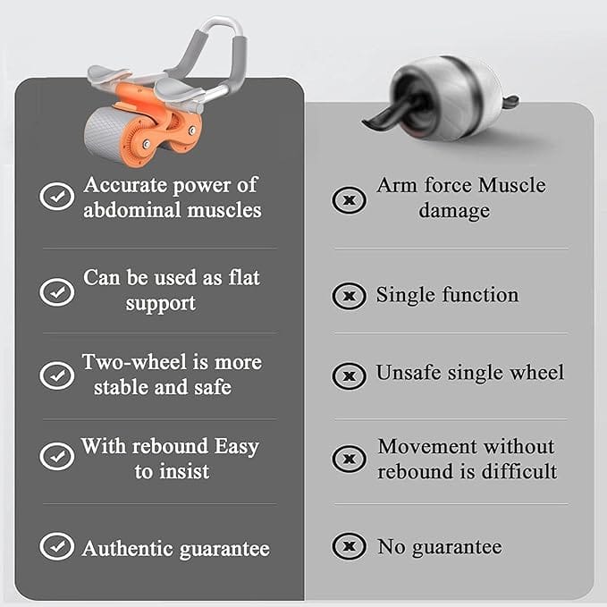 The Abdominal Exercise Roller is a versatile 2-in-1 device designed for both abdominal workouts and board exercises, making it an effective tool for enhancing your fitness. With its innovative Bounce Assistant Technology, this roller automatically returns to its original position, ensuring a safer workout experience. The ergonomic handles with elbow support provide comfort and stability, making it ideal for users of all levels.