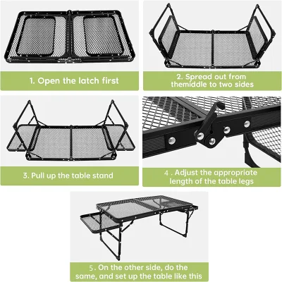 Our table features non-slip feet and secure locking mechanisms that provide a stable and level surface, even on uneven ground. This ensures your items remain safe and secure, enhancing your outdoor experience.